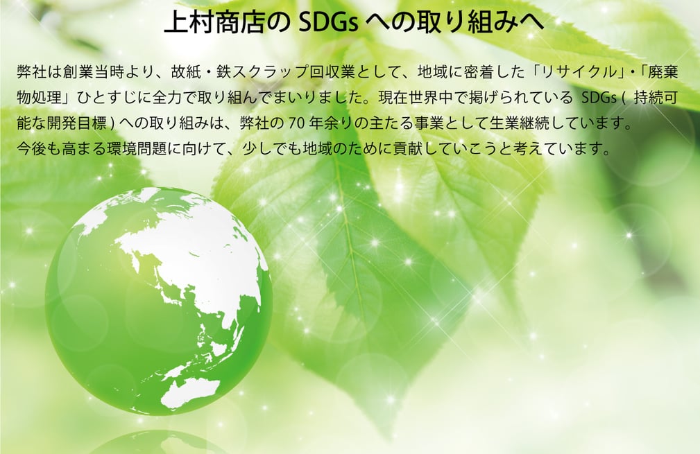 有限会社 上村商店はSDGs (持続可能な開発目標) の達成に貢献することを宣言します。